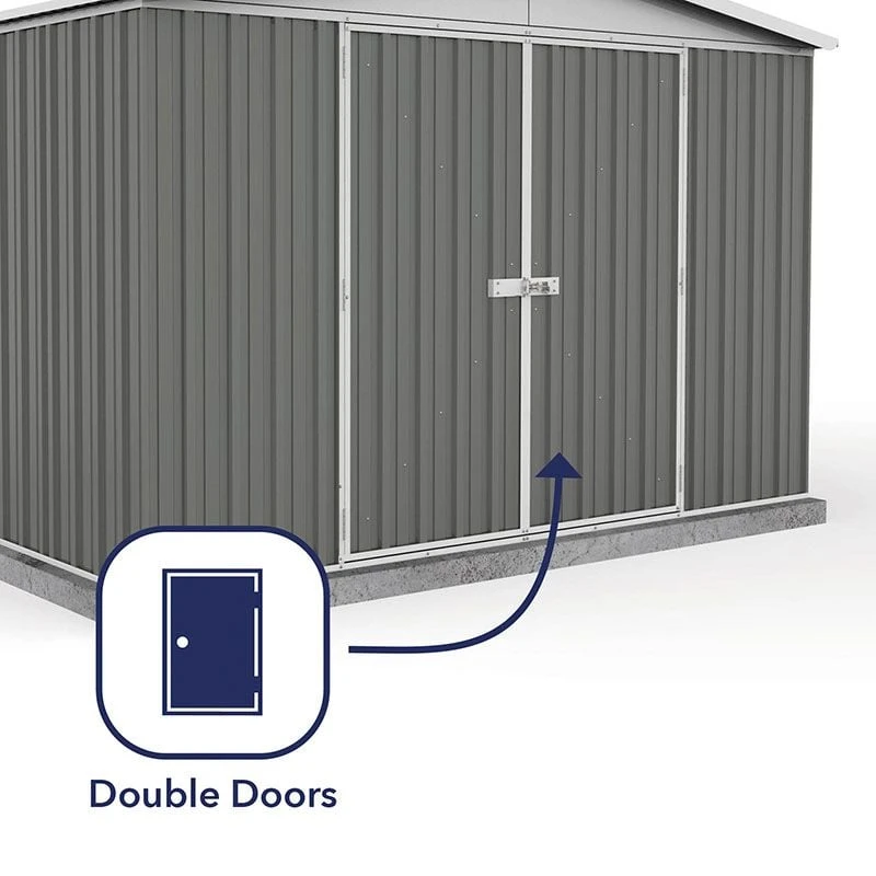 Boasting a very attractive design, SNAPTiTE easy assembly and remarkable 30-year anti-rust warranty, the 10 x 10 Absco Regent Double Door Metal Shed in Grey (3m x 2.92m) is certain to meet even our most discerning customers’ storage requirements.