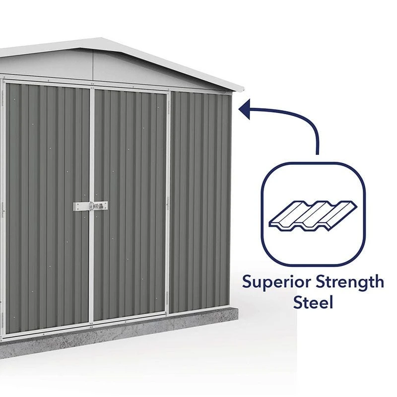 This metal shed is proudly built in Australia from Bluescope high-tensile steel, so is completely weatherproof and impervious to rust. 100% pest proof and fire retardant too, this premium shed will neither blister, swell nor warp. It offers you exceptionally robust and durable garden storage, and will maintain its attractive appearance for decades to come.