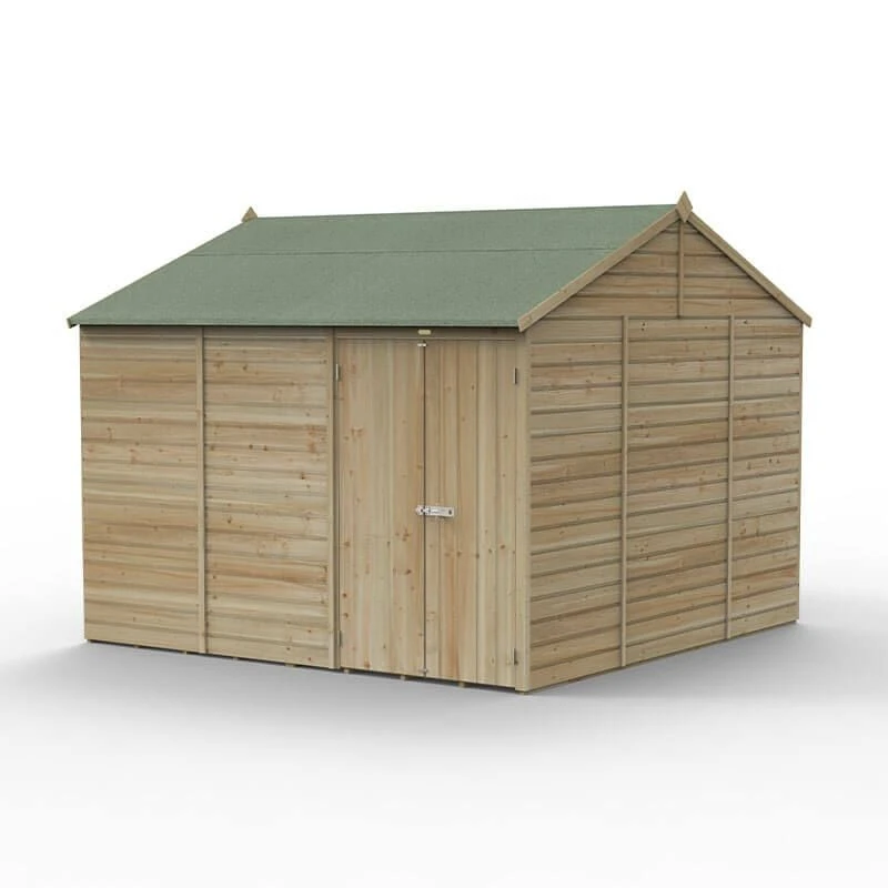 If you want to buy a Great British shed that offers more than just plain, old garden storage, choose a Forest Beckwood 25yr Guarantee Shiplap Pressure Treated Shed. A weather beating home for your tools, bicycles, fishing tackle and more, this particular model is the 10×10 Windowless Double Door Reverse Apex Shed (3.21m x 3.01m), and here’s what makes it special…