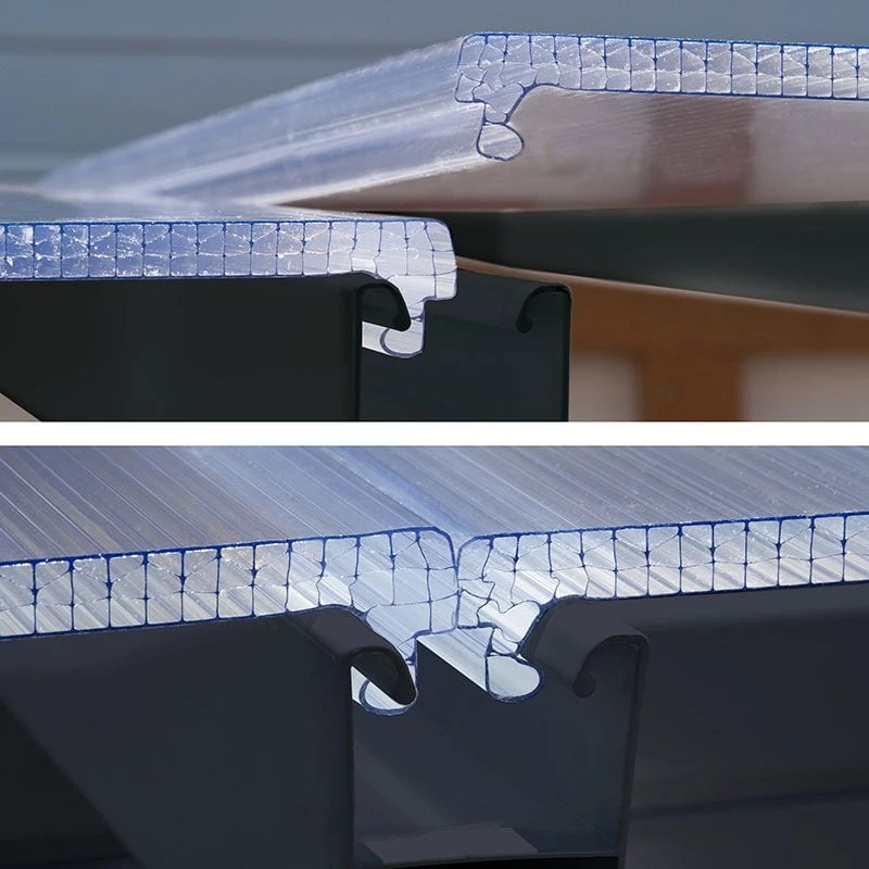 - 8mm multi-wall polycarbonate roof panels and crystal-clear 3mm acrylic side panels