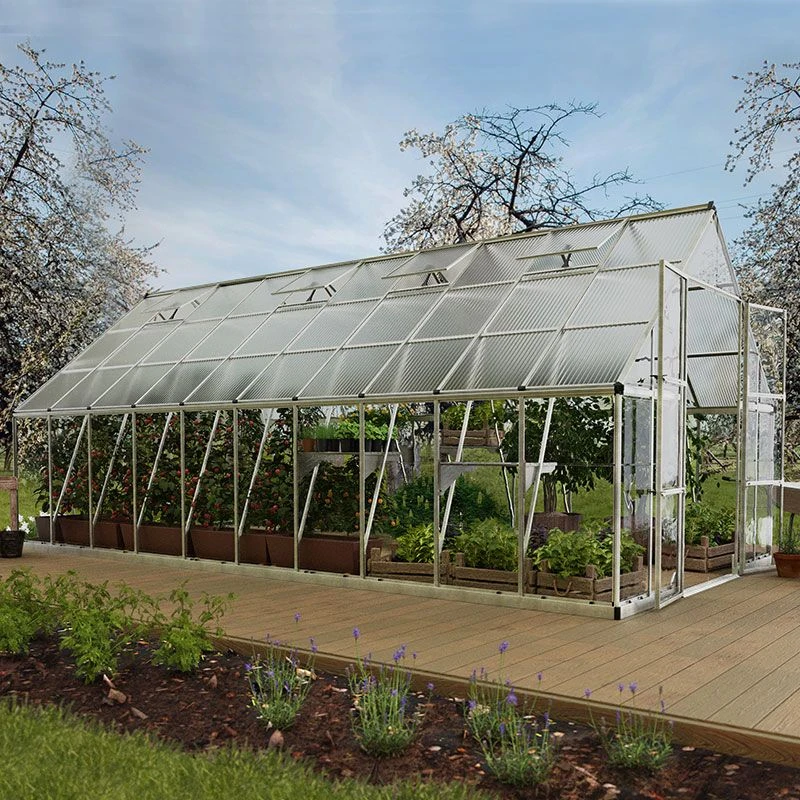 - 4mm twin-wall polycarbonate roof panels, crystal-clear polycarbonate side panels and rust-resistant aluminium frame