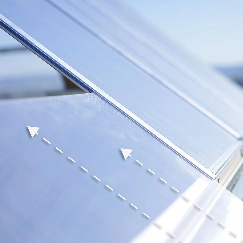 The light-diffusing roof panels promote an even temperature by increasing thermal insulation and reducing extreme sunlight exposure, while the side panels allow 90% light transmission. Both types of panel are shatterproof and completely UV protected, so your plants will enjoy optimal growing conditions, you will be protected from harmful UV rays, and the panels will neither discolour nor fade in the sun.