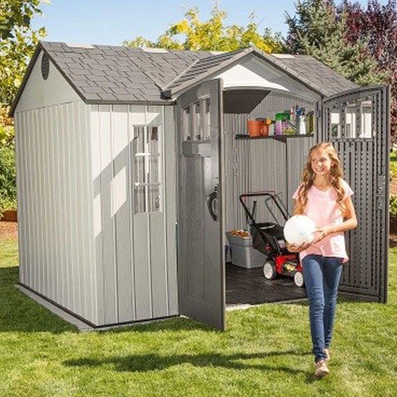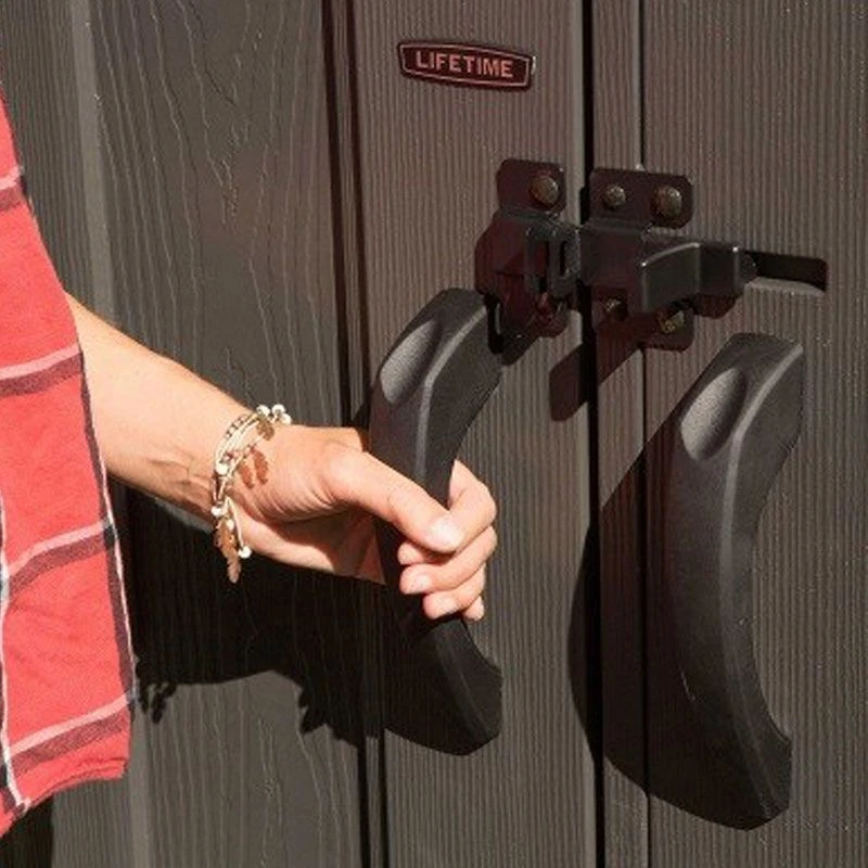 The wide double doors offer comfortable access and can be secured by 2 internal deadbolts and an exterior padlock loop (padlock not included), so you can rest assured that your valuable items will remain safe and secure. The doors are also fitted with 2 attractive framed windows, which, combined with the 2 fully-framed side windows, 1 ridge skylight and 4 small skylights, allow you to enjoy a plethora of natural light if you’re working inside. All of these windows are built from lightweight styrene, which is safer than standard glass and virtually-unbreakable. 2 screened vents provide a pleasant internal temperature, reduce condensation and ensure perfect storage conditions.