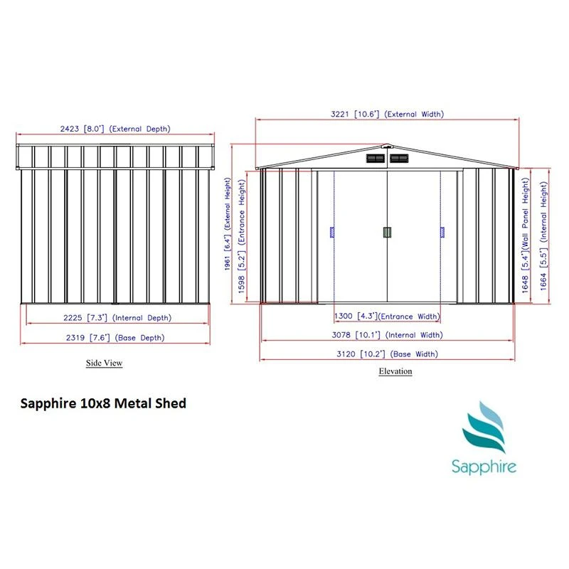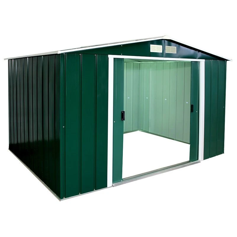 This premium 10 x 8 metal shed is a spacious, robust garden storage facility which offers outstanding protection for outdoor furniture, lawnmowers and bicycles.