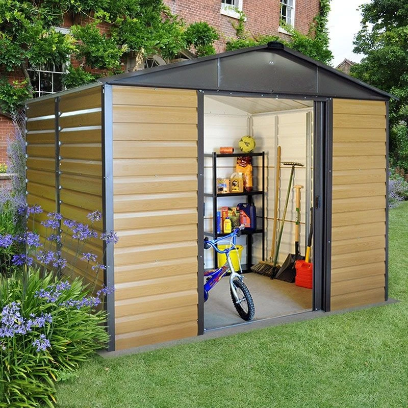 A traditional apex roof and a baked-on wood-effect finish make for an incredibly attractive appearance, and if you don’t get any pleasure from coating your shed in preservative or replacing wind-torn roof felt, we’ve got some splendid news for you – this shed for sale is completely maintenance free, offering you a premium garden storage facility with absolutely no hassle.