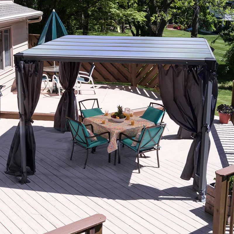 This polycarbonate and aluminium gazebo is completely maintenance-free, saving you money and leaving you with more time to do the things you enjoy. It comes with pre-cut panels, pre-drilled profiles and fixings to help you achieve a straightforward installation. The screw-free sliding panel assembly system ensures the gazebo will always remain watertight.