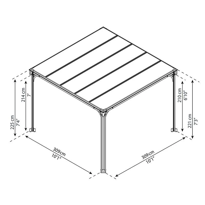 With its striking, contemporary design and superb 10-year limited warranty, the 10×10 Palram Canopia Milano 3000 Garden Gazebo (3m x 3m) is the perfect garden shelter for all kinds of outdoor entertainment and is sure to be the envy of your friends.