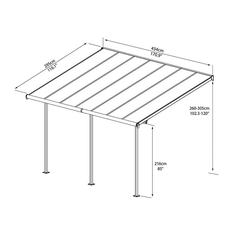 You can purchase a Palram Canopia patio cover, with the same premium specifications, in a range of sizes, with either a grey or white frame. UV-resistant acrylic side walls and a low-heat LED lighting system are available for you to buy as optional extras.