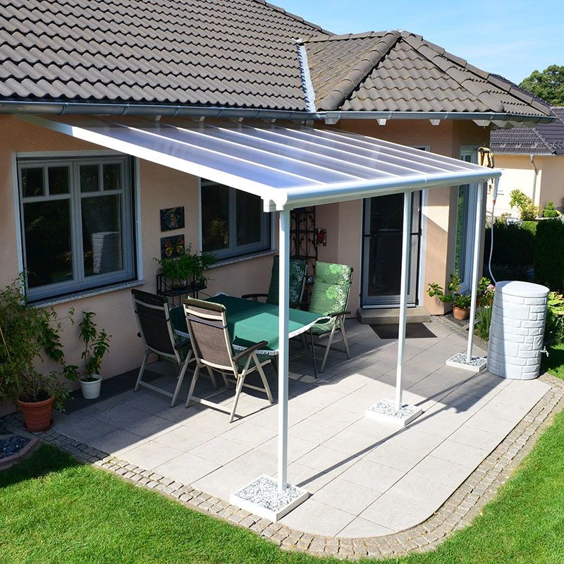 This polycarbonate patio cover also features a heavy-duty, powder-coated aluminium frame, 3 supporting legs and laser-cut galvanised steel connectors, all of which are robust, durable and impervious to rust.