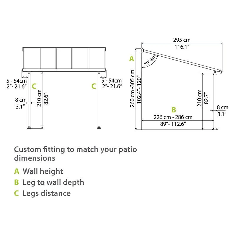 You can purchase a Palram Canopia patio cover, with the same premium specifications, in a range of sizes, with either a grey or white frame.