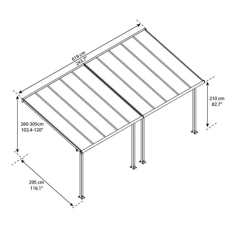 You can purchase a Palram Canopia patio cover, with the same premium specifications, in a range of sizes, with either a grey or white frame.