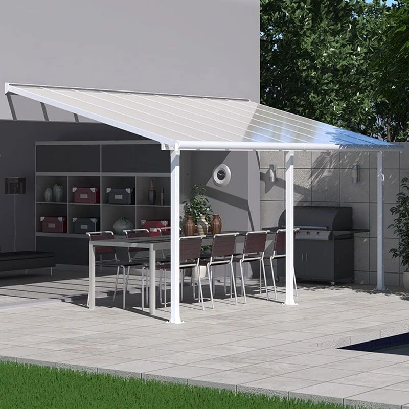 This polycarbonate patio cover also features a heavy-duty, powder-coated aluminium frame, powder-coated aluminium profiles, 4 supporting legs and laser-cut galvanised steel connectors, all of which are robust, durable and impervious to rust.
