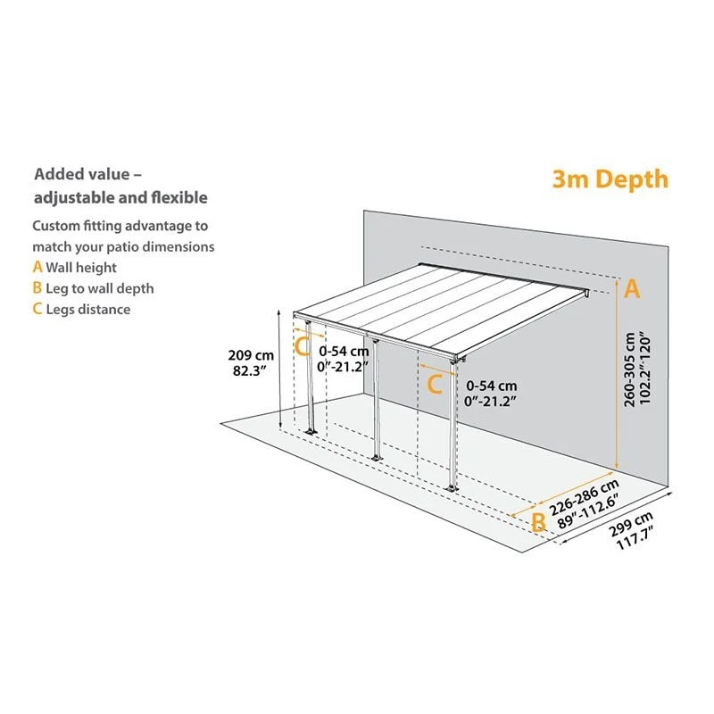 Wouldn’t it be wonderful to relax in your garden, sheltered from showers and shaded from the sun? Well, If you’d like to spend more time outdoors and don’t want the weather spoiling your fun, buy the 10×24 Palram Canopia Sierra Grey Patio Cover (3m x 7.3m) today.