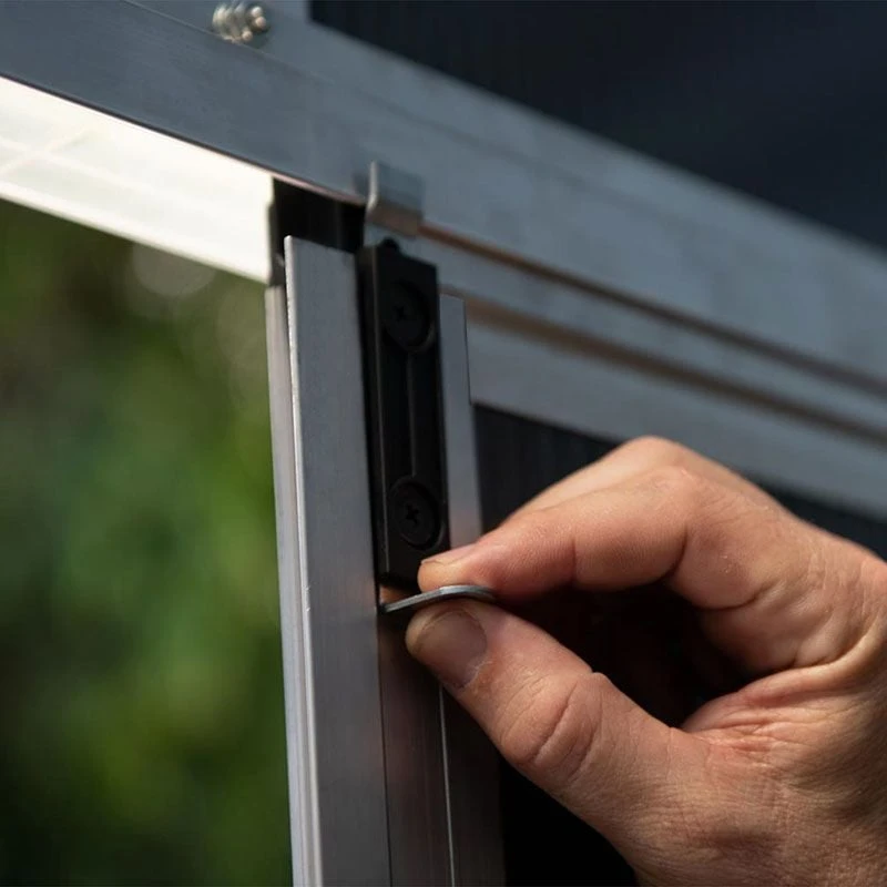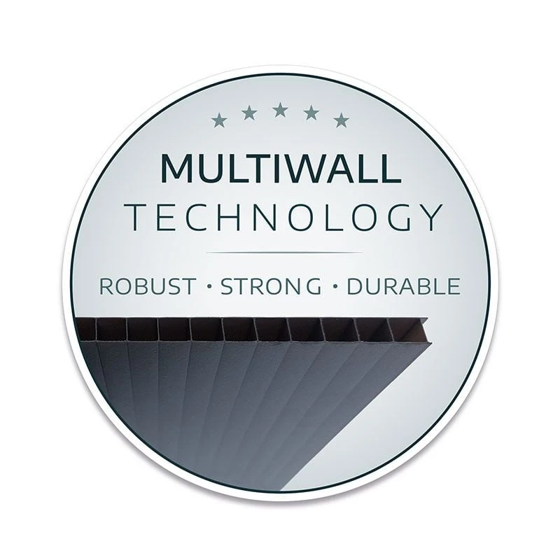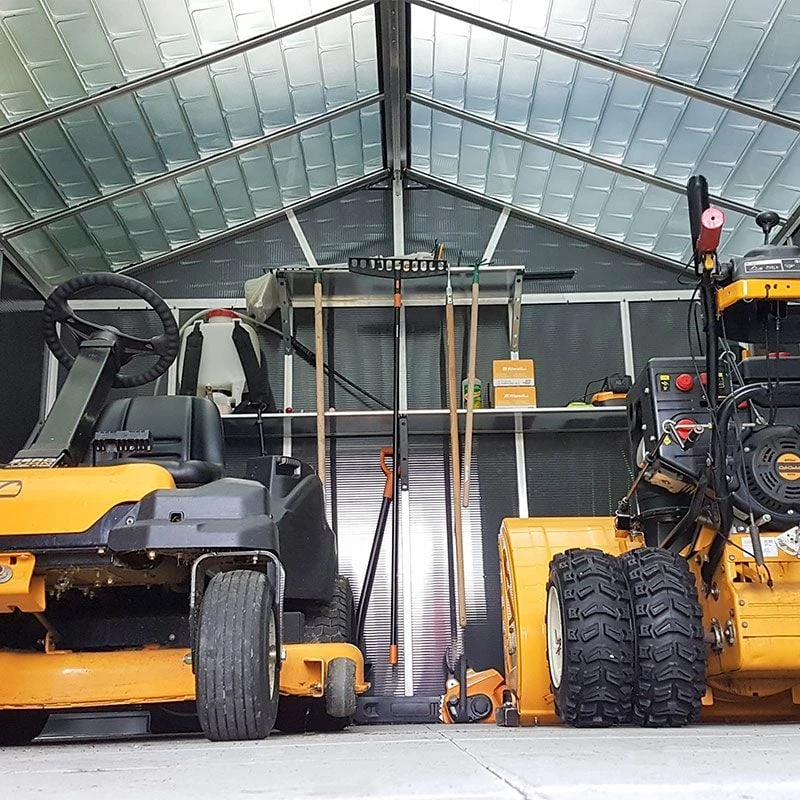 Built using fortified, commercial grade 10mm polycarbonate panels, which are virtually unbreakable, this garden shed is completely UV-protected, blocks 100% of harmful UV-rays, and will never discolour, rot nor warp. It is insect and fungus-proof, resistant to the most extreme weather conditions, and there’s no danger, whatsoever, of it bowing or sagging. The aluminium frame and galvanised steel perimeter base are impervious to rust and add to the shed’s exceptional solidity.