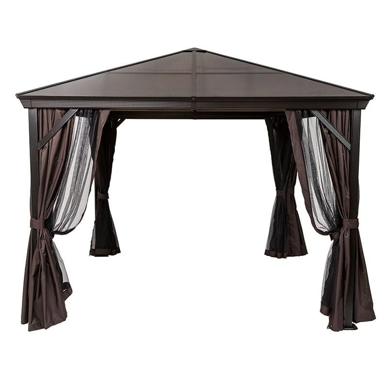 Expertly constructed on a reinforced aluminium frame, this garden gazebo is attractive, durable and impervious to rust. The 7mm polycarbonate roof features an eye-catching pyramid-shaped design, which is completely weatherproof.