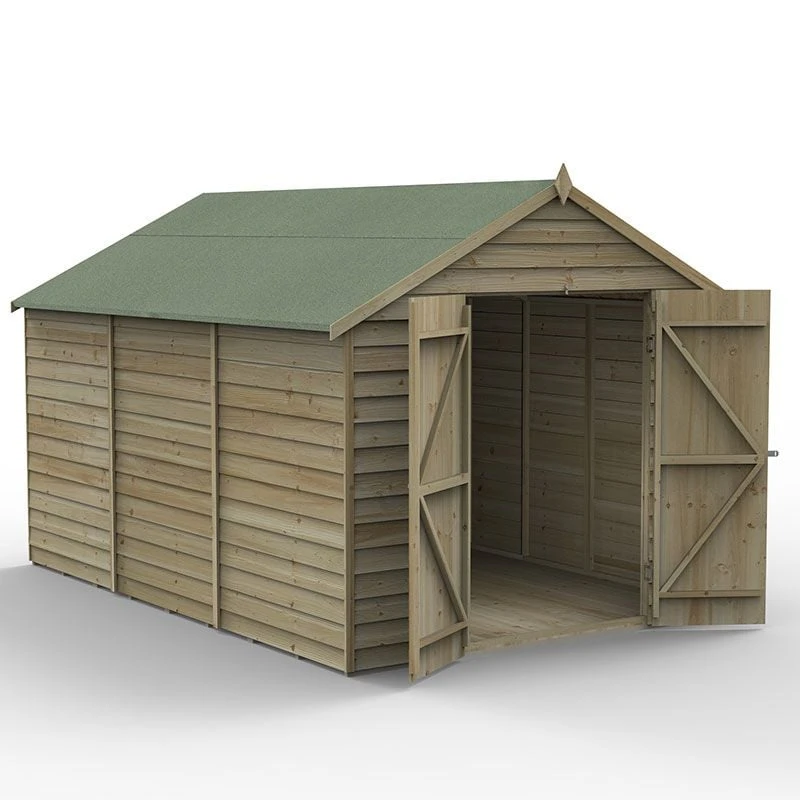 Available in a range of designs and sizes, Forest 4Lifeâ„¢ Overlap Pressure Treated Sheds are beautifully handcrafted here, in Great Britain. Packed full of premium features, they are the best range of overlap sheds Forest has ever made. This particular model is the 12×8 Windowless Double Door Apex Shed (3.6m x 2.61m), making it perfectly suited to people requiring secure garden storage for tools, bicycles and other expensive outdoor equipment.