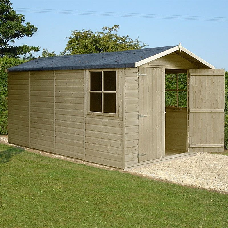 Backed by an impressive 10-year anti-rot guarantee, pressure-treated, and enjoying a beautiful honey-brown finish, this premium wooden shed is resistant to rot, but periodic re-treatment is still recommended to maintain its stylish appearance. If you prefer a more singular look, why not apply a coat of paint?