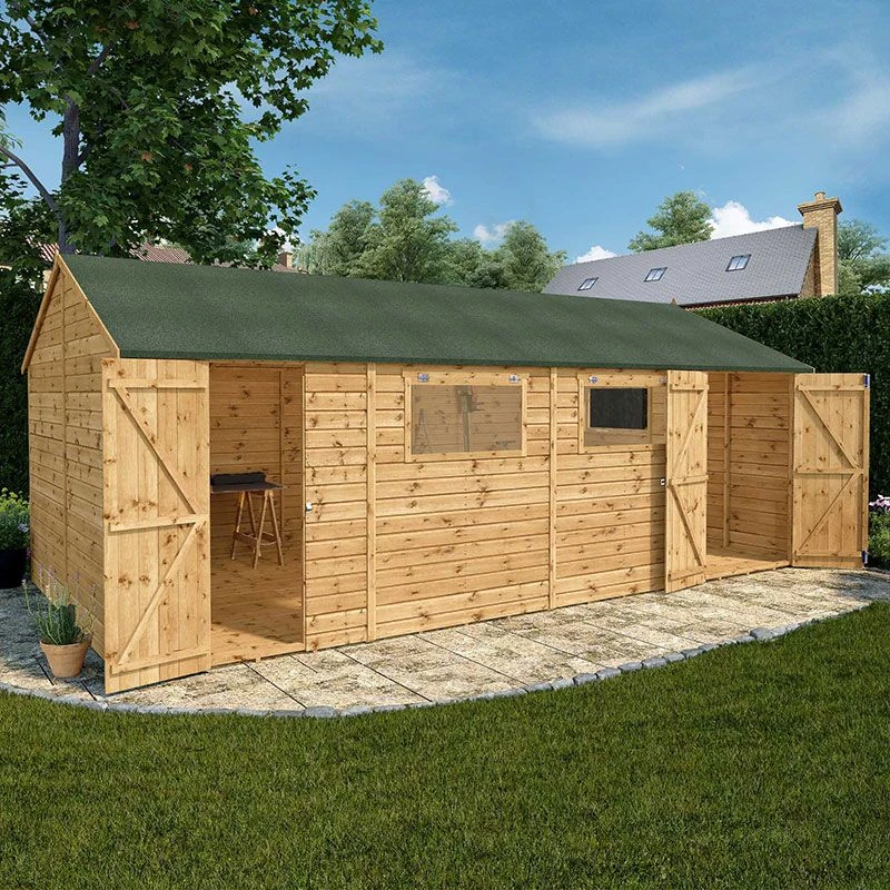 Easier to assemble, offering more flexible garden storage, and far stronger than a standard wooden shed, the 20 x 10 Mercia Shiplap Reverse Apex Workshop (6m x 3.2m) boasts a smart modular design, is built in Great Britain and supplied with a superb 10-year guarantee.