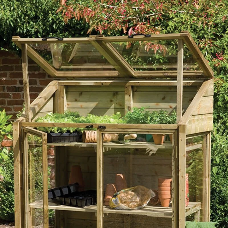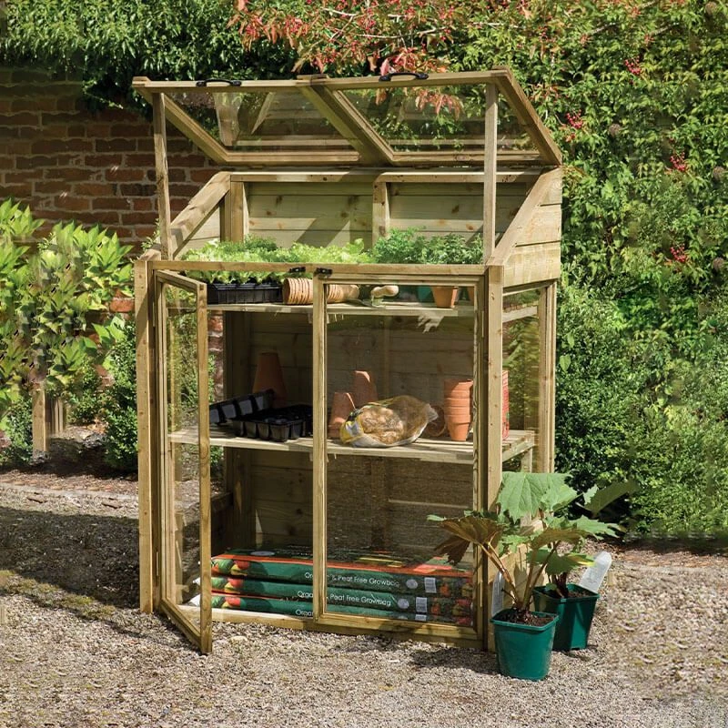 With its double independently opening lids, two doors and compact size, the wooden Mini Greenhouse is ideal for the smaller garden or patio where space is at a premium.