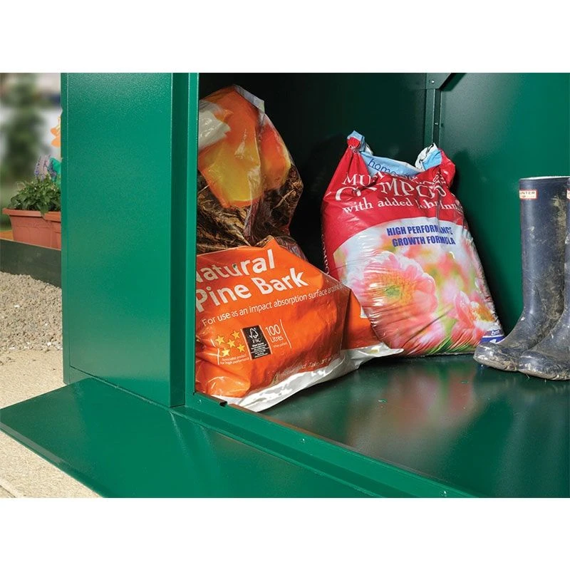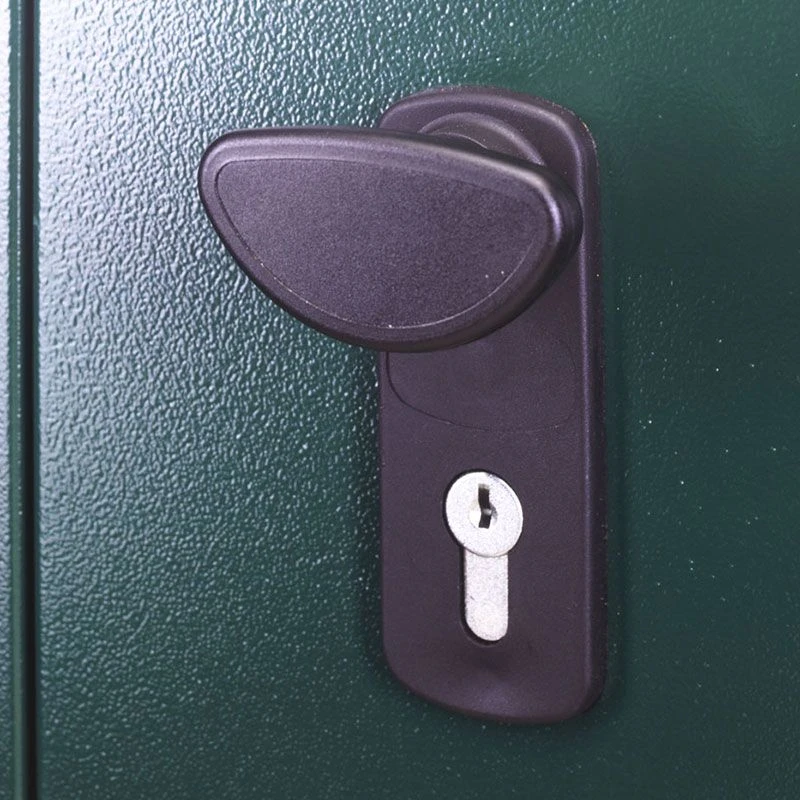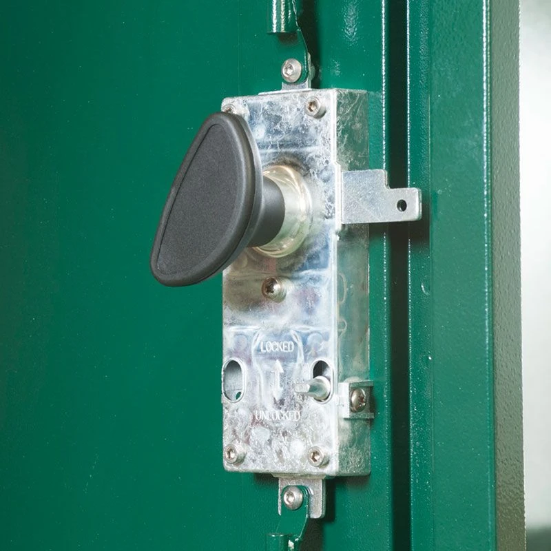 You’ll find storing your lawnmower and tools extremely easy thanks to a large, heavy-duty, galvanised steel single door. This door features a top-of-the-range 3-point locking system, including a key-operated lock, which is both drill and pick-resistant, and dead bolts, so rest assured that your valuable tools will be completely safe from unwanted attention.