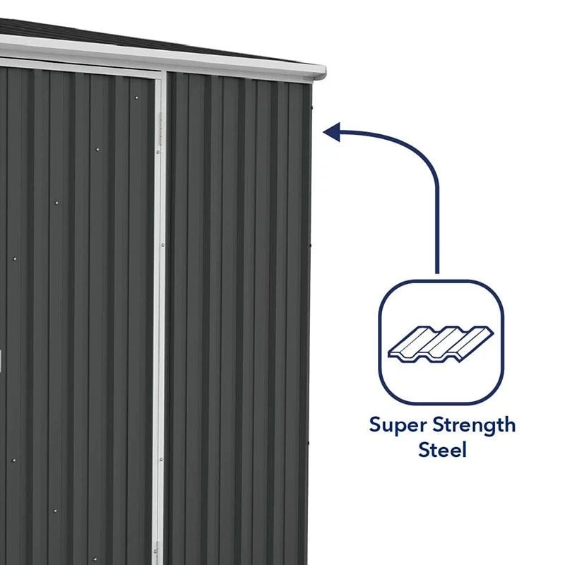 Boasting a contemporary design, patented SNAPTiTE technology and remarkable 30-year anti-rust warranty, the 5 x 5 Absco Space Saver Pent Metal Shed in Dark Grey (1.52m x 1.52m) is sure to meet even our most discerning customers’ storage requirements.