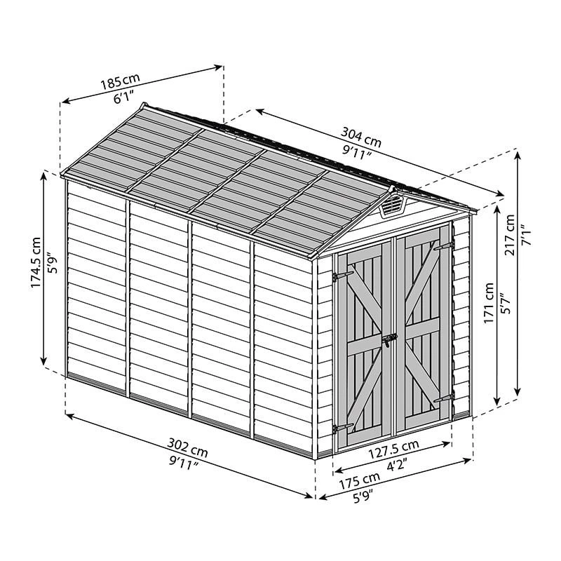 Offering you robust and stylish garden storage for your tools and equipment, the 6 x 10 Palram Canopia Tan Skylight Plastic Shed comes with some high-specification features and a superb 10 year limited warranty.
