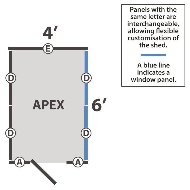 Once inside, you’ll find the high roofline allows plenty of headroom, along with the chance to store taller items. The 4 PET-glazed windows provide an abundance of natural light – perfect if you’re storing important equipment or working on DIY projects. Far more secure than conventional glass, these windows are completely shatterproof, made from recycled materials, and will neither discolour nor fade over time. You can instal them in a variety of positions – again, the choice is yours. (Please see the floor plan for further details.)