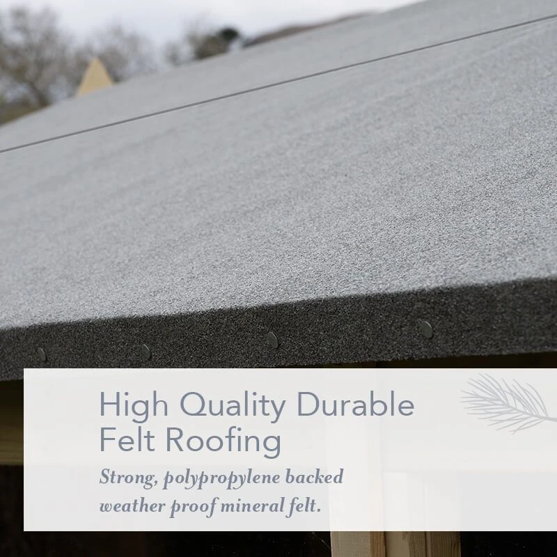 - Tough 8mm OSB roof with weatherproof felt covering