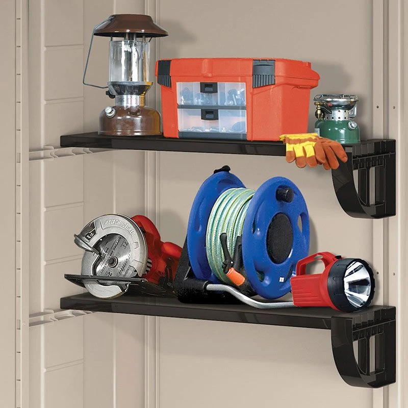 This shed comes with 2 shelves as standard, so you can organise your tools effectively (brackets are included). A high roof offers you plenty of headroom and further increases your garden storage options. Strategically-placed air vents prevent condensation and keep your equipment in optimal storage conditions.