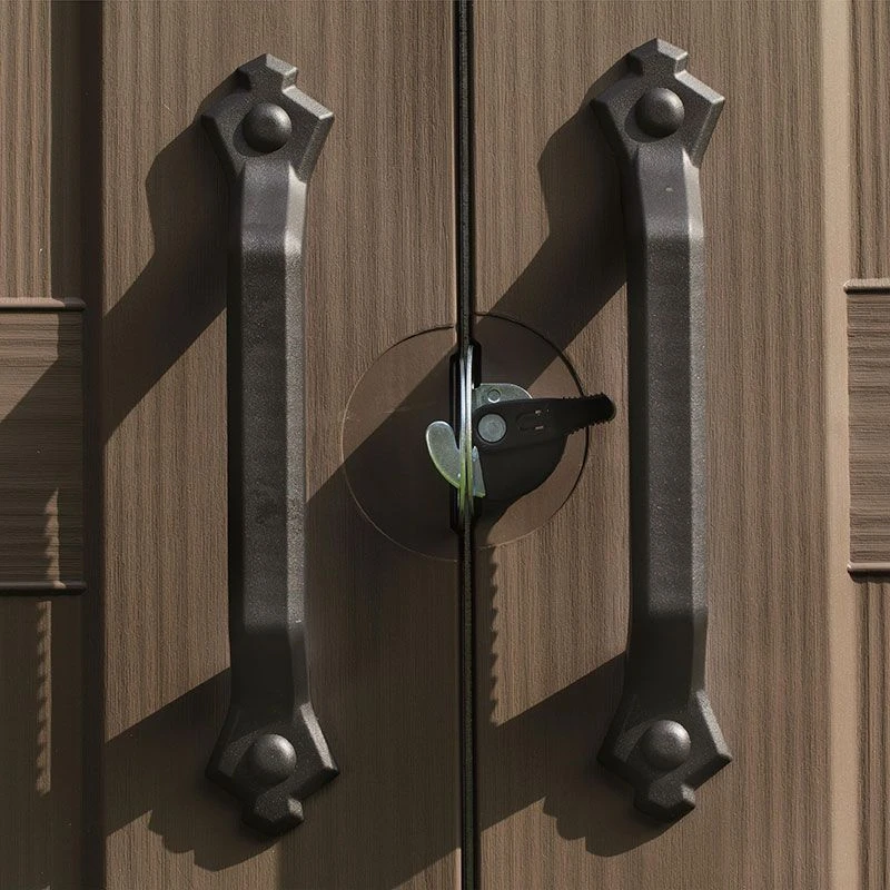 Deep enough for bicycles and tall enough for ladders, this premium plastic shed is expertly built from double-wall resin panels, reinforced with steel. Featuring an eye-catching wood-effect finish, this garden shed strikes the perfect balance between beauty and brawn.