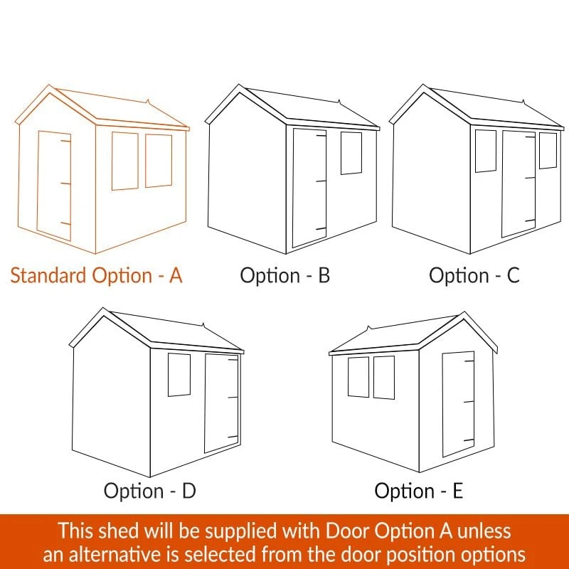 This garden shed is available in a range of sizes, with either an apex or pent roof. A number of other choices and optional extras are available to purchase, including an extra-wide door, stable door, double doors, an additional door, door fitted in various positions, conversion of fixed windows to opening windows, a windowless design, a Pro Shed Base Kit, wooden floor bearers and, of course, that upgrade to pressure-treated timber. Our UK-based customer service team will be delighted to guide you through your options.