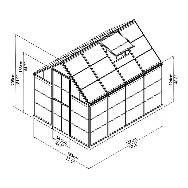 Offering the perfect environment for your plants to thrive, and near-unbreakable too, the 6×8 Palram Canopia Harmony Green Polycarbonate Greenhouse (1.85m x 2.47m) combines a traditional design with high-specification materials throughout.