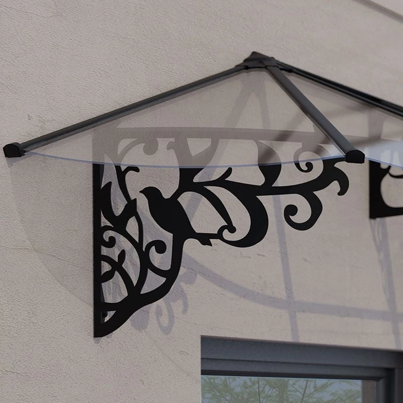 Featuring 6mm twin-wall polycarbonate panels, this high-specification porch awning is near unbreakable, shatterproof and completely UV protected, so will maintain its attractive appearance above your doorway and neither discolour nor fade in the sun. The powder-coated aluminium profiles and powder-coated galvanised-steel support arms are robust, durable and impervious to rust.
