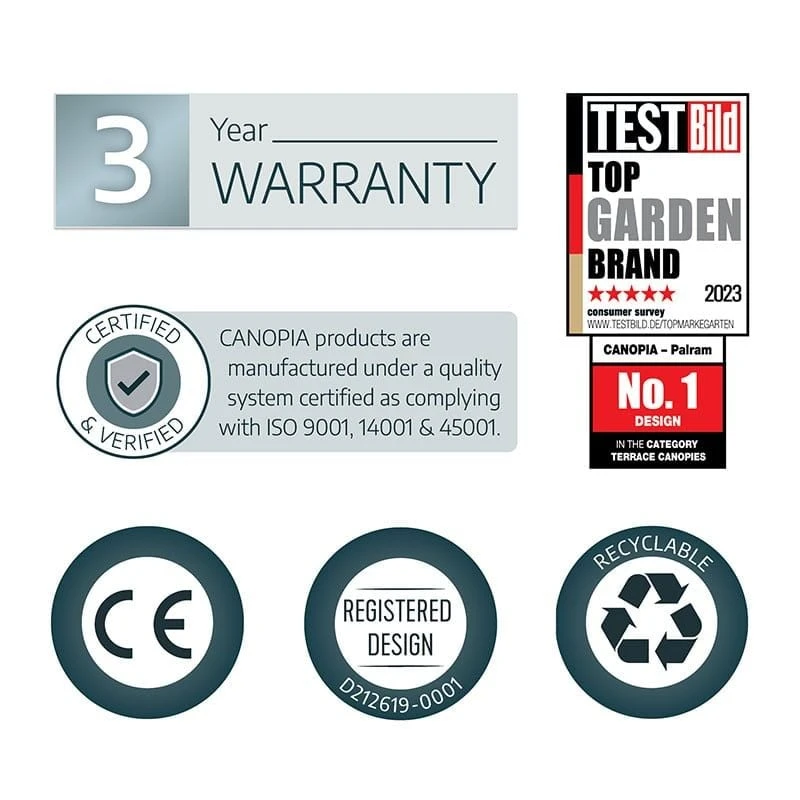 This over door canopy is made from recyclable materials and supplied with a 3-year limited warranty. It is completely maintenance free, saving you money and leaving you more time to do the things you enjoy.