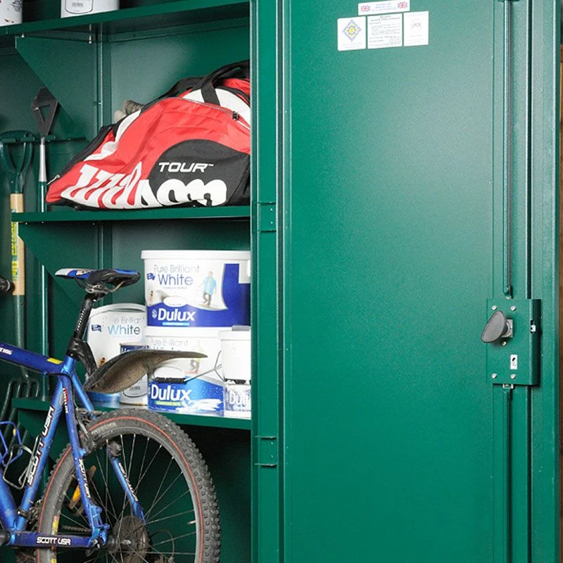 Endorsed by the police and constructed from premium materials throughout, this robust metal shed offers you an unbeatably secure garden storage facility to house your valuable bikes, lawnmowers and tools.