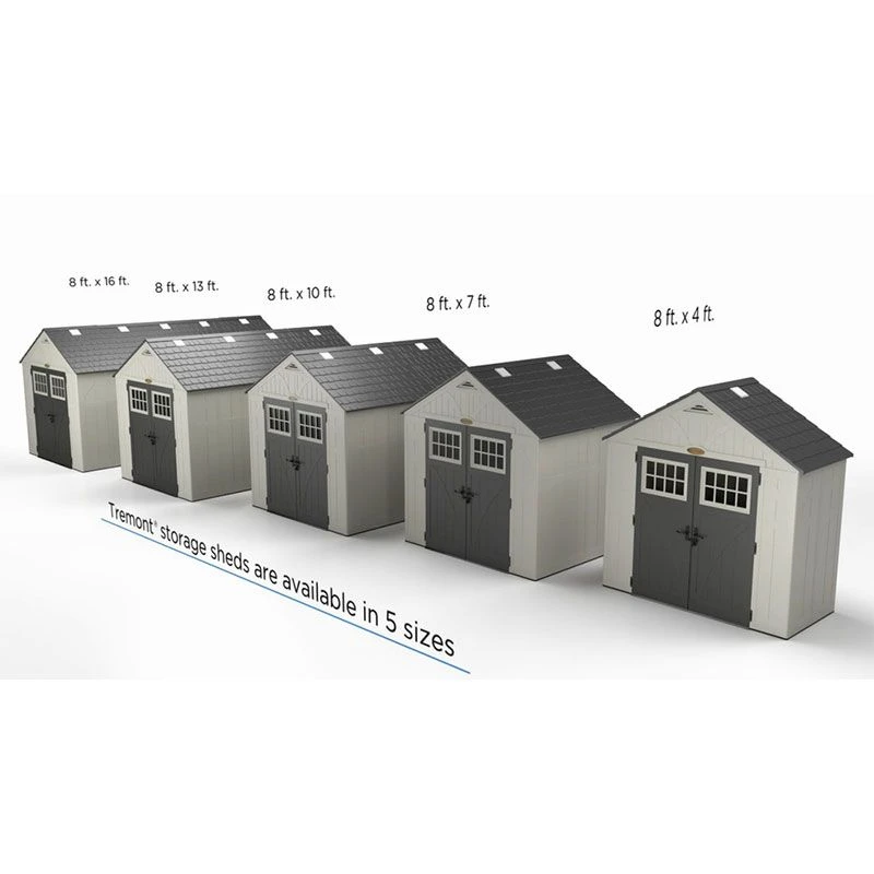 This huge Suncast 8×13 Tremont shed is one of the biggest and strongest plastic sheds in our range. In a stunning vanilla colour with stoney coloured doors and a slate colour roof, this shed is a perfect choice for any larger garden.