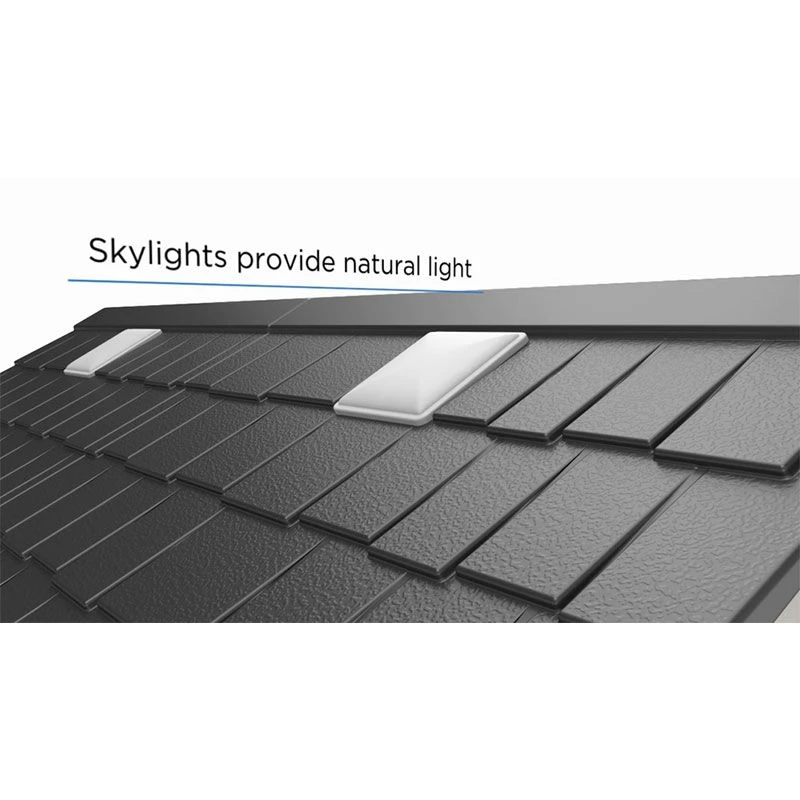 - Metal reinforced shingle style roofing panels allow for effective water run off preventing any water damage.