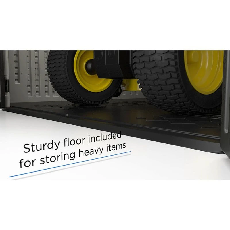- Huge 714 cubic foot storage capacity and reinforced floor panels make this shed perfect for storing larger and heavier garden equipment.
