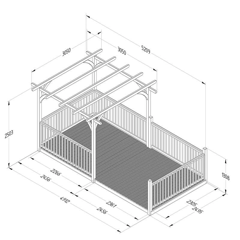 Featuring a pergola, 8×16 decked area and 5 x 8ft balustrades (approximate measurements), this decking kit offers a wonderful backdrop to all of your outdoor entertainment plans.