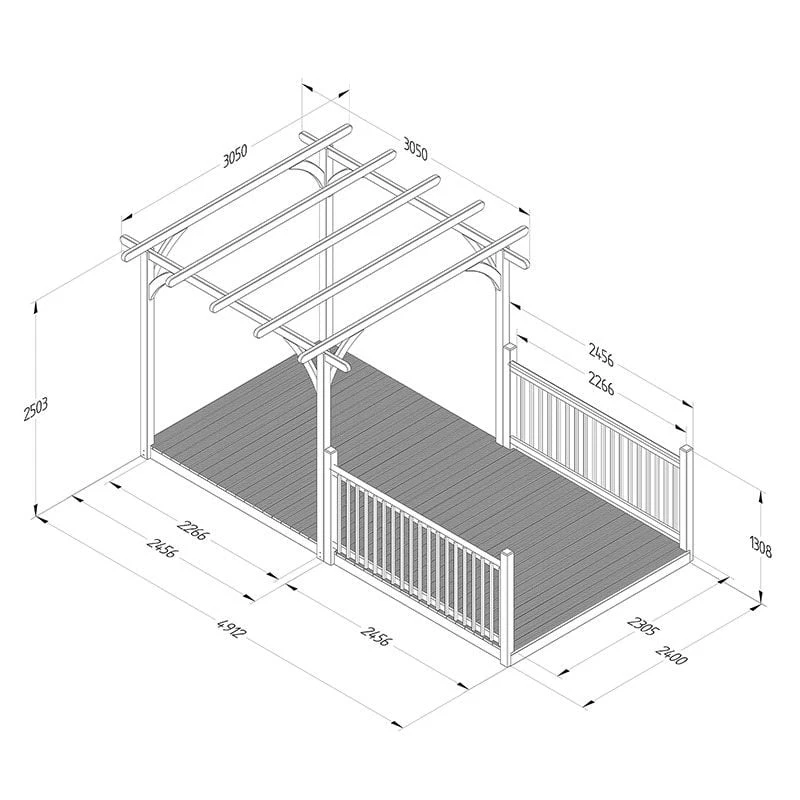 Featuring a pergola, 8×16 decked area and 2 x 8ft balustrades (approximate measurements), this decking kit offers a wonderful backdrop to all of your outdoor entertainment plans.