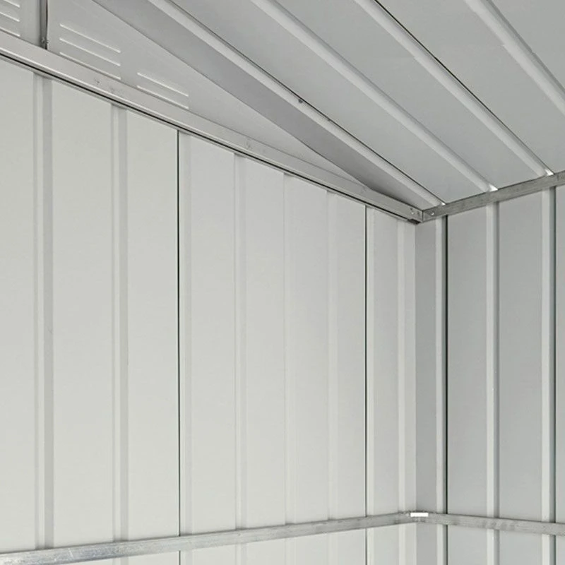 Boasting superior bracing throughout, as well as wrap-around corner panels, this garden shed is built from high-tensile, hot-dipped galvanised steel, with a heavy-gauge galvanised steel frame and base rails, so will prove unbeatably robust, impervious to rust and provide complete protection for your stored items for many years to come.