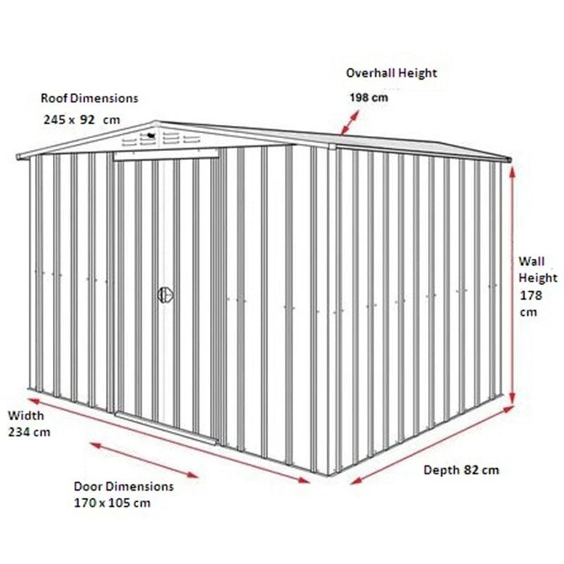 With dimensions of 198cm x 245cm x 92cm, this 8×3 shed is supplied with a straightforward instruction manual, video guide and on-hand technical support to help you achieve a simple, stress-free assembly.