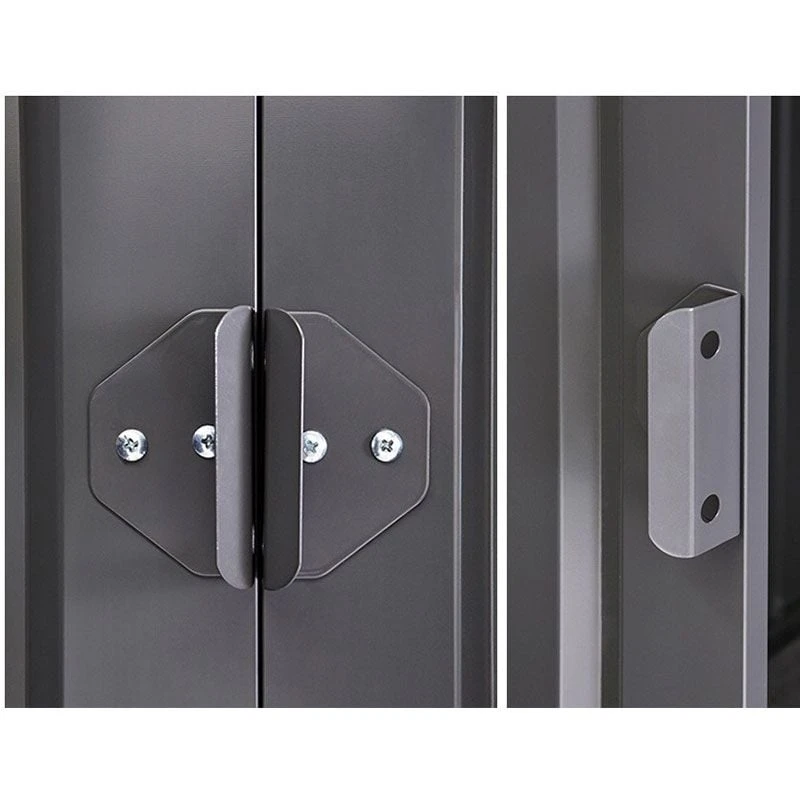 - Double sliding doors with steel handles and padlock point