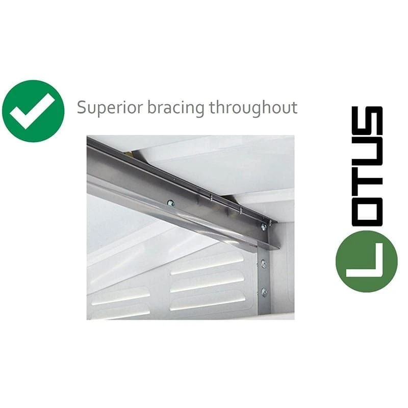 Thanks to an innovative design, this 8×6 shed is made from fewer parts than its competitors, so is far easier to assemble than other metal sheds. A user-friendly instruction manual and on-hand technical support are there to assist you, if required.