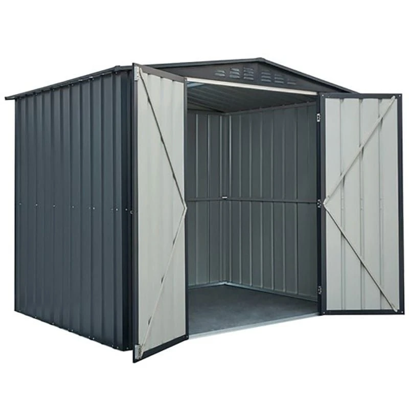 Supplied with a superb 15-year anti-rust warranty (+ 1-year manufacturer’s structural warranty), this garden shed features a traditional apex roof and a premium anthracite paint finish, which make for a smart, contemporary appearance.