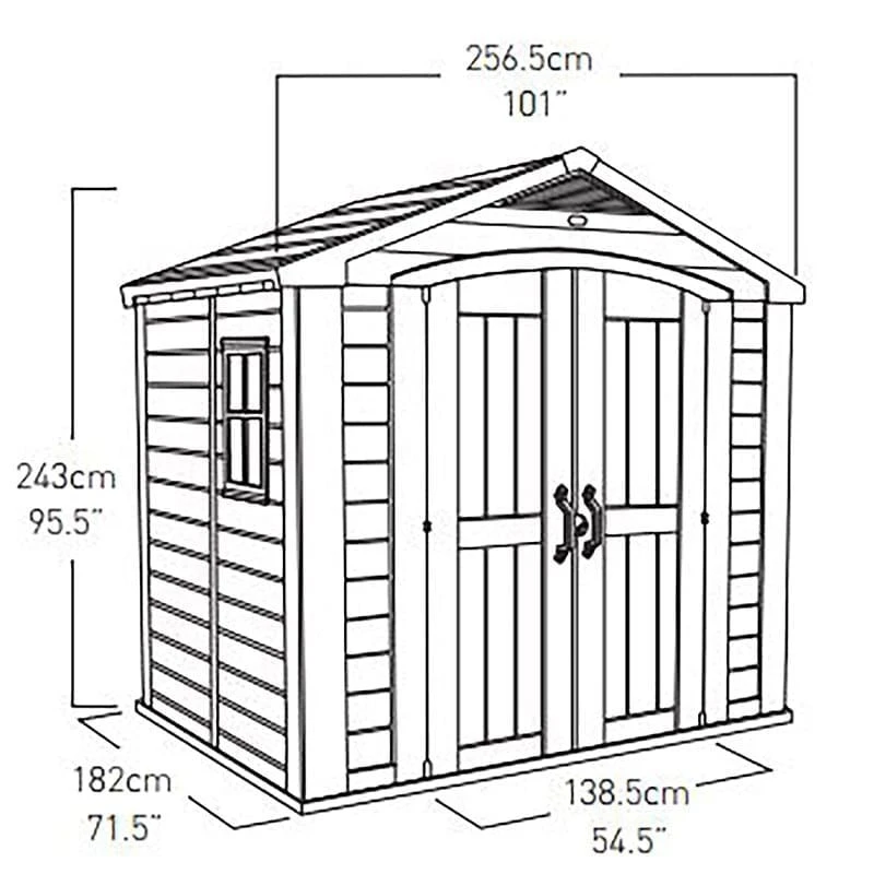 Built to withstand the rigours of a busy garden and supplied with a superb 15-year limited warranty, the 8 x 6 Keter Factor Plastic Garden Shed (2.57m x 1.82m) is perfectly designed to store all types of outdoor equipment.