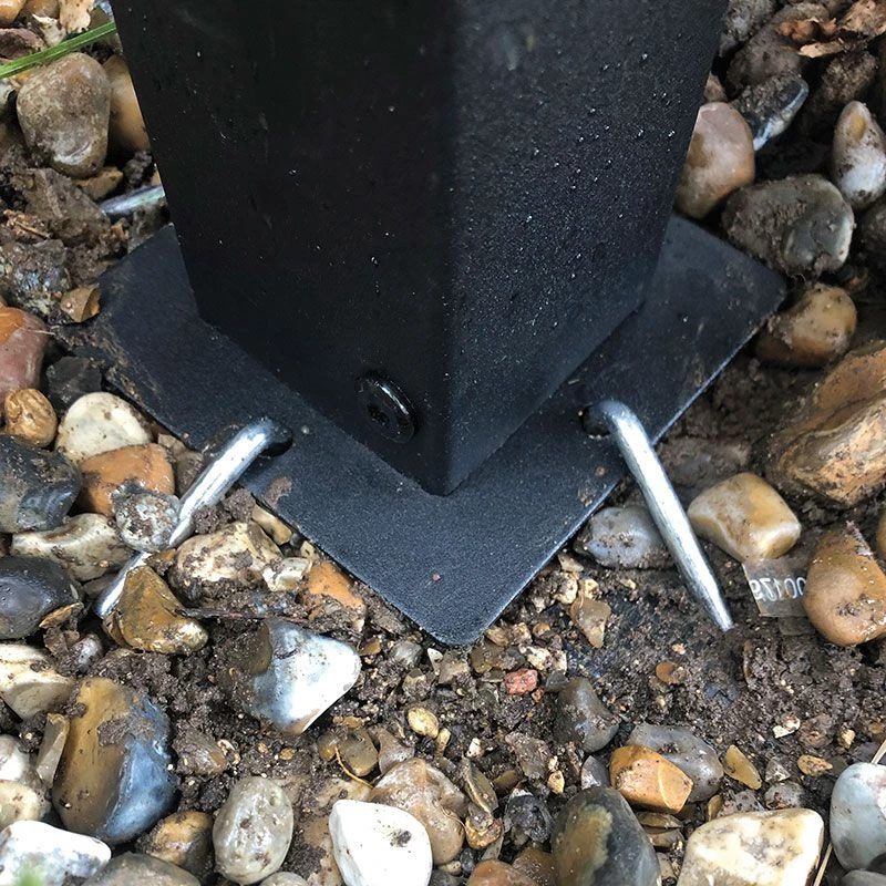 - Robust steel frame with fixing plates and ground anchors
