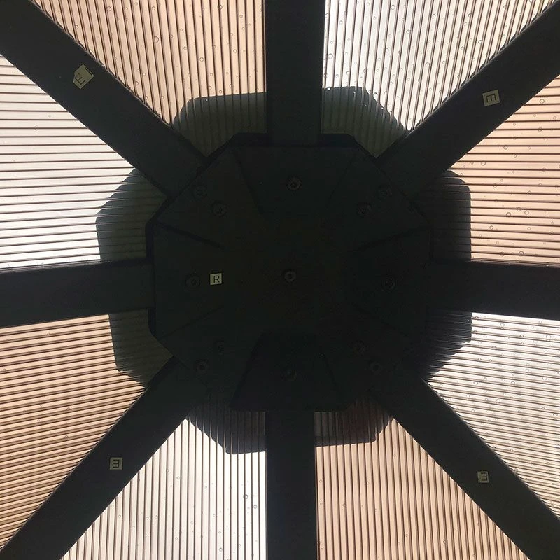 - Bronzed polycarbonate roof with pyramid-shaped design