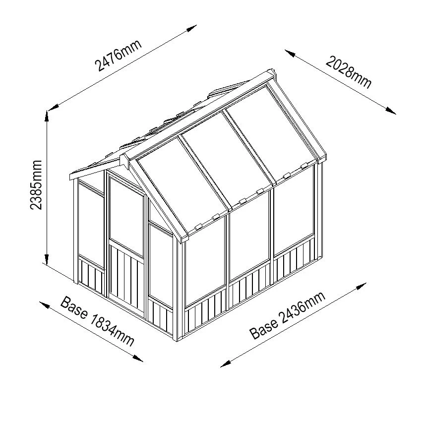 No compromise has been made in order to bring you the most durable and robust 8×6 wooden greenhouse possible. All timber used is slow grown, planed, pressure treated and kiln dried to give a 15 year anti-rot guarantee. Thanks to the pressure treatment there is also no need for annual retreatment, saving you time and money. The use of 12mm Tongue and Groove cladding combined with extremely robust 70x45mm framing has created a durable structure built to last, ensuring your 8×6 wooden greenhouse will stand up to the elements.