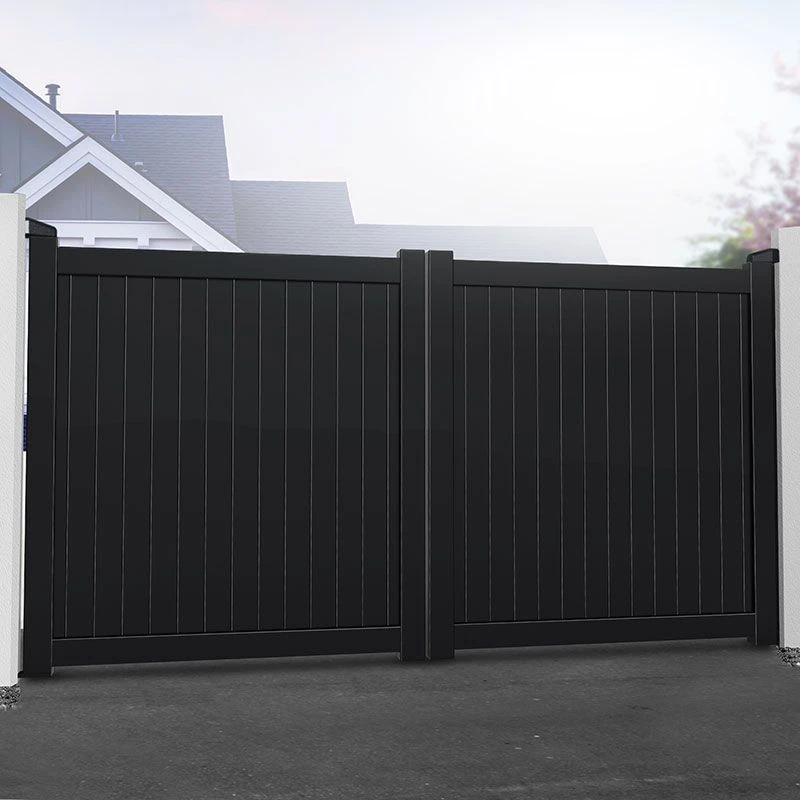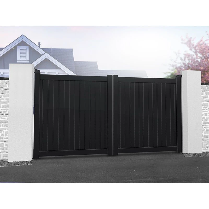 Featuring a solid, vertical infill and flat top, these double swing gates’ streamlined design oozes class, ensures complete privacy and provides effective security for your property.